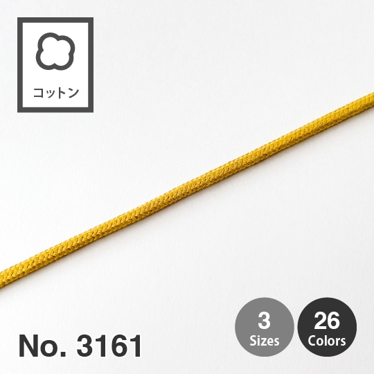 特殊加工をした綿糸を後染めすることで、コットンでありながら適度な光沢があり、色展開が豊富な丸紐です。