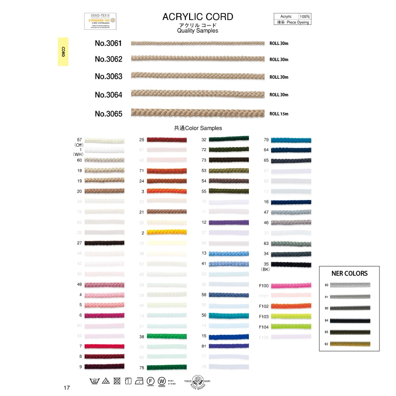 特にリボンやひもなど繊維の商品は生産時期・染色ロットにより色目やサイズが多少異なる事がございます。