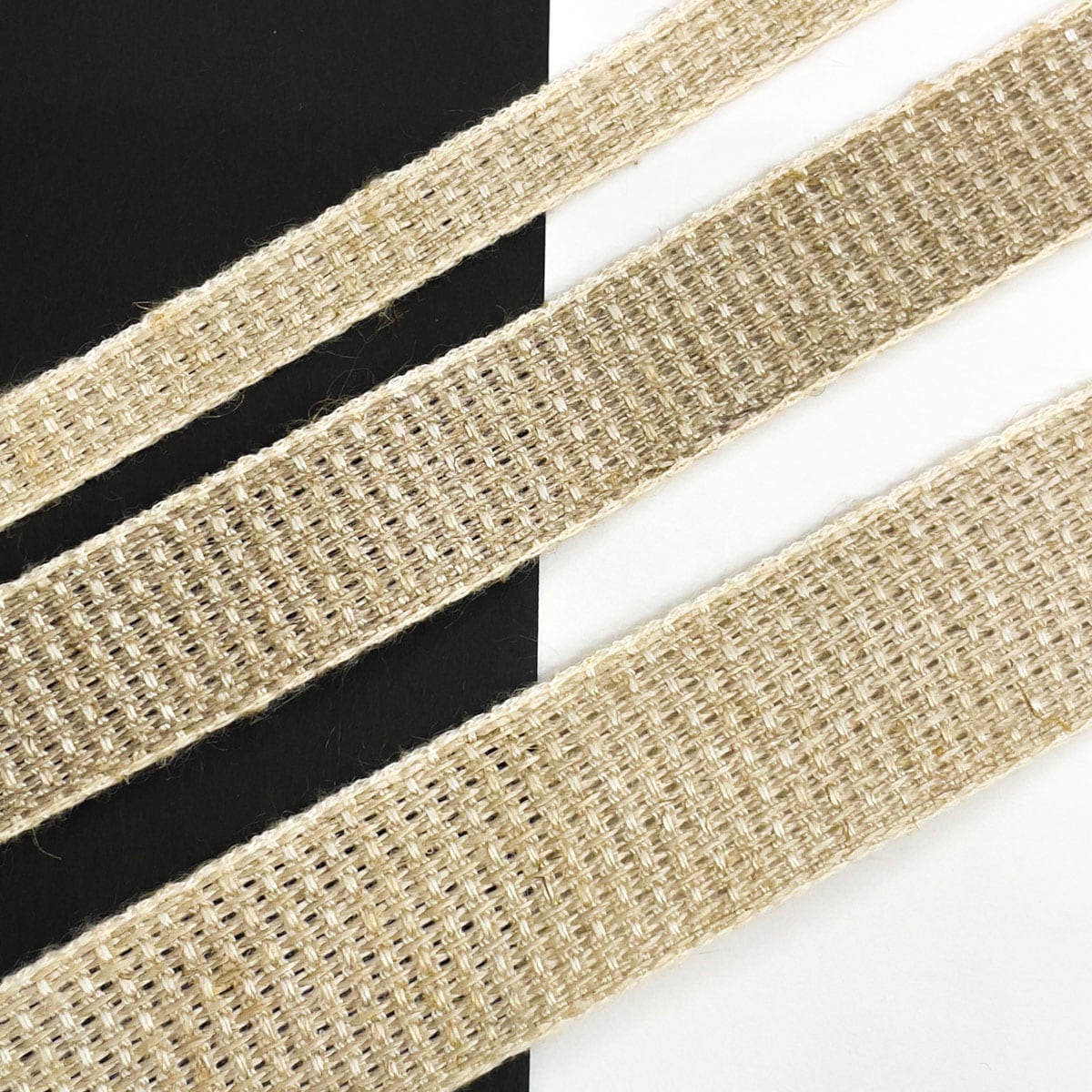 コットンとリネンの色差で平織りに表現を加えたテープです。