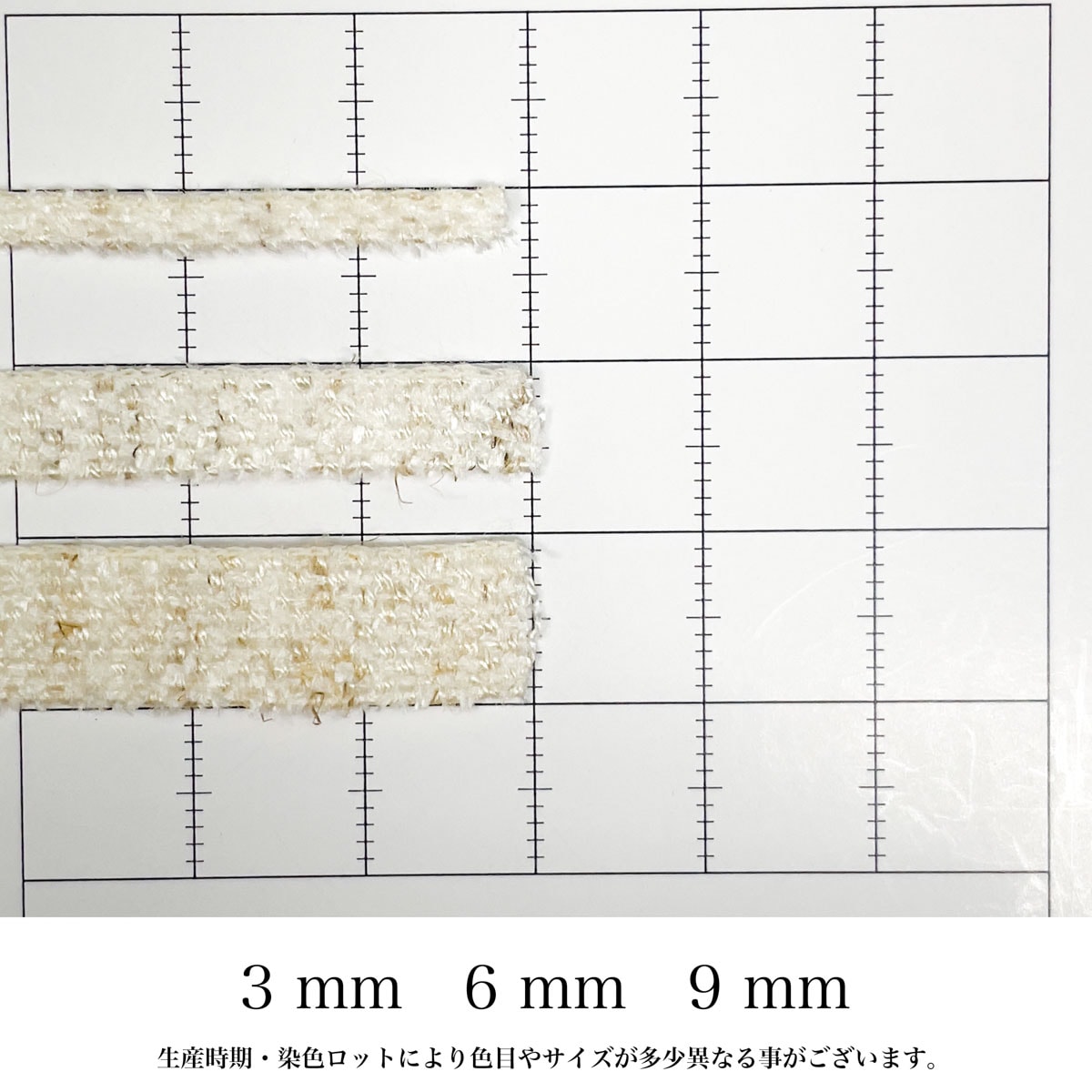 特にリボンやひもなど繊維の商品は生産時期・染色ロットにより色目やサイズが多少異なる事がございます。