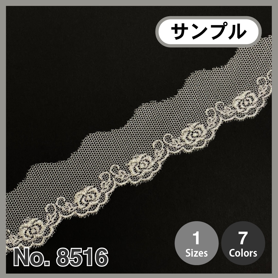 【サンプルカット】[No.8516]ラメ エンブロイダリー レース (チュール)