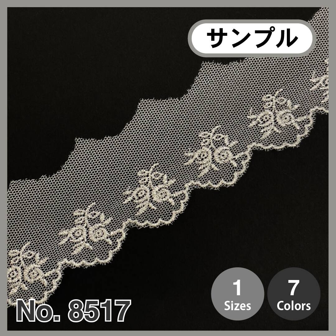 【サンプルカット】[No.8517]ラメ エンブロイダリー レース (チュール)