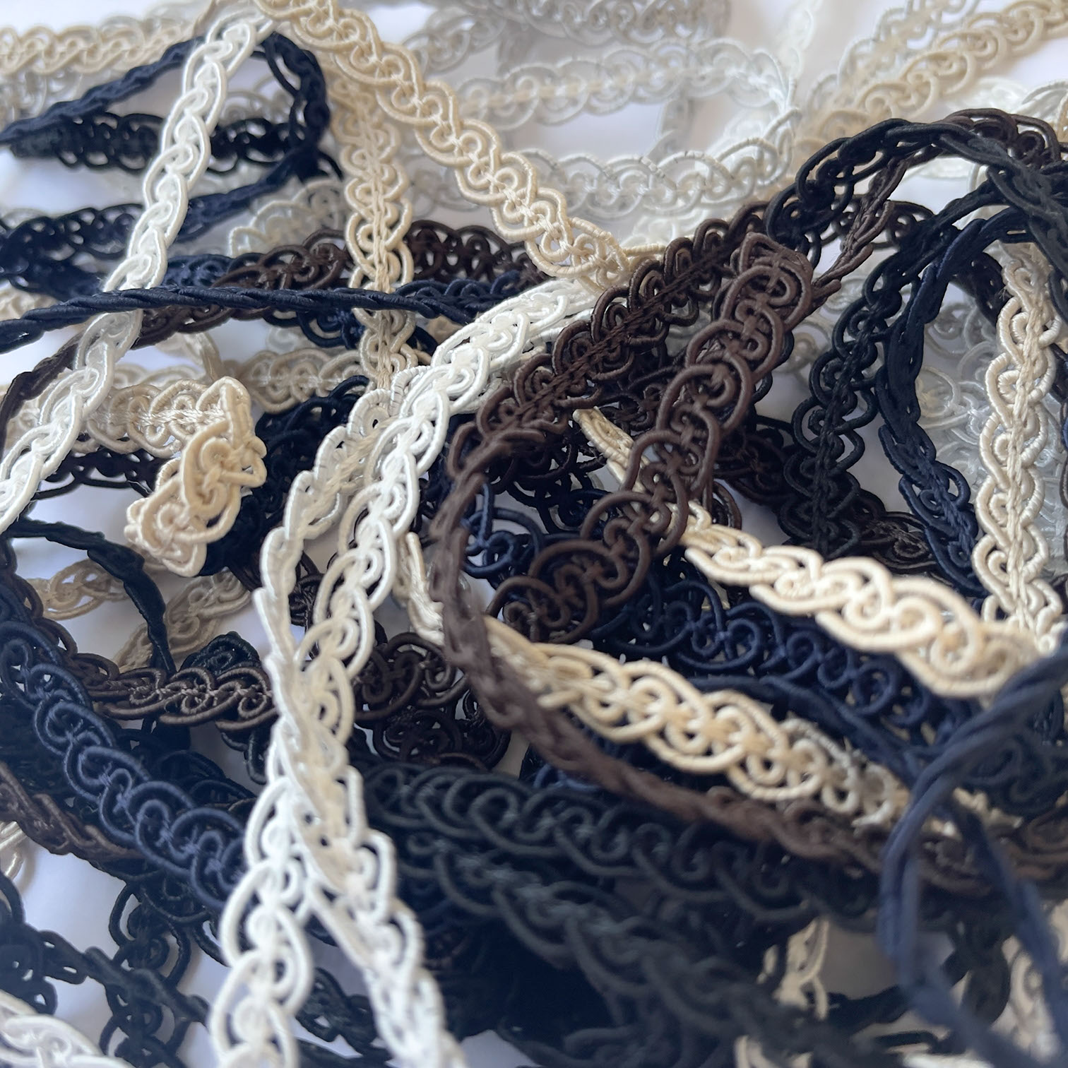 特にリボンやひもなど繊維の商品は生産時期・染色ロットにより色目やサイズが多少異なる事がございます。