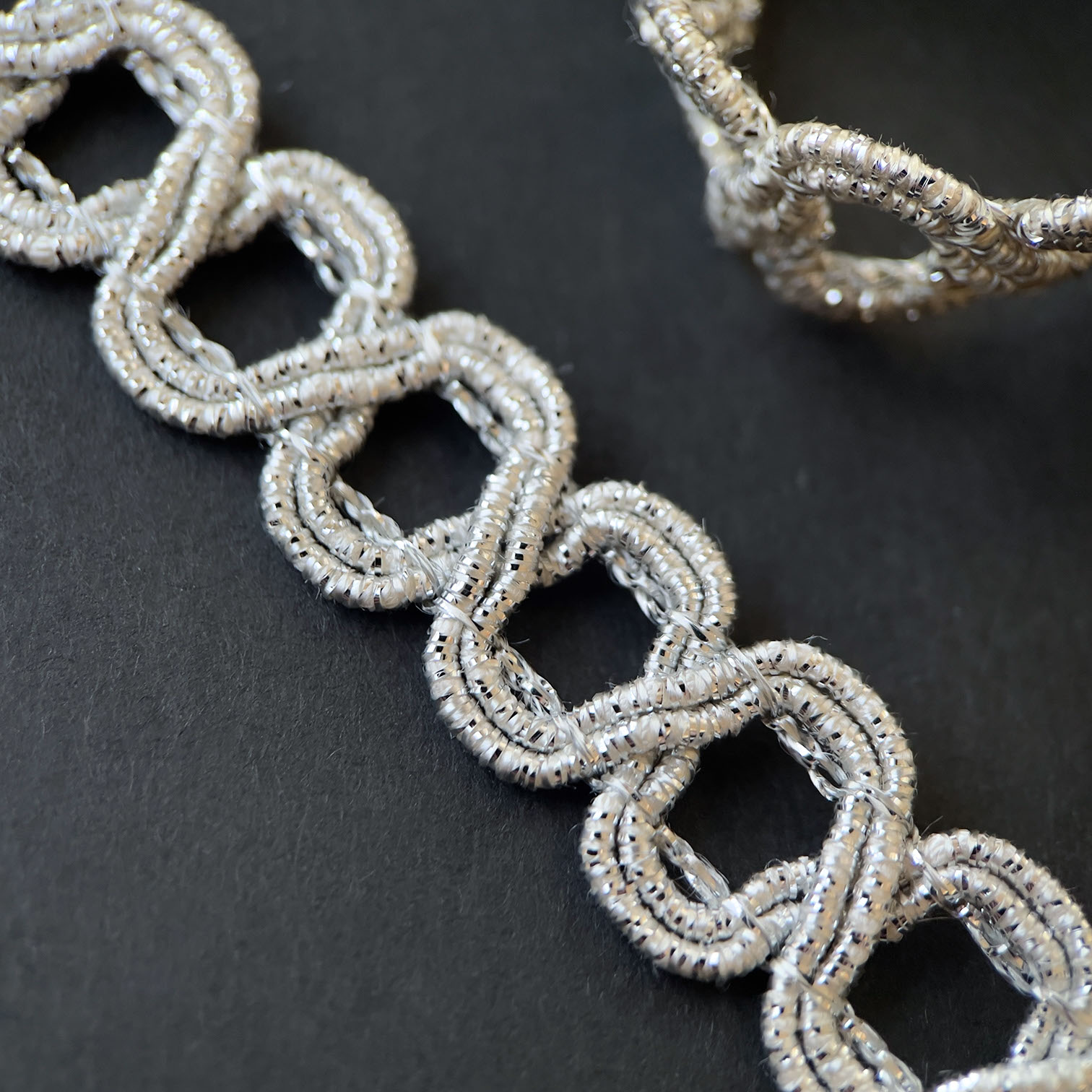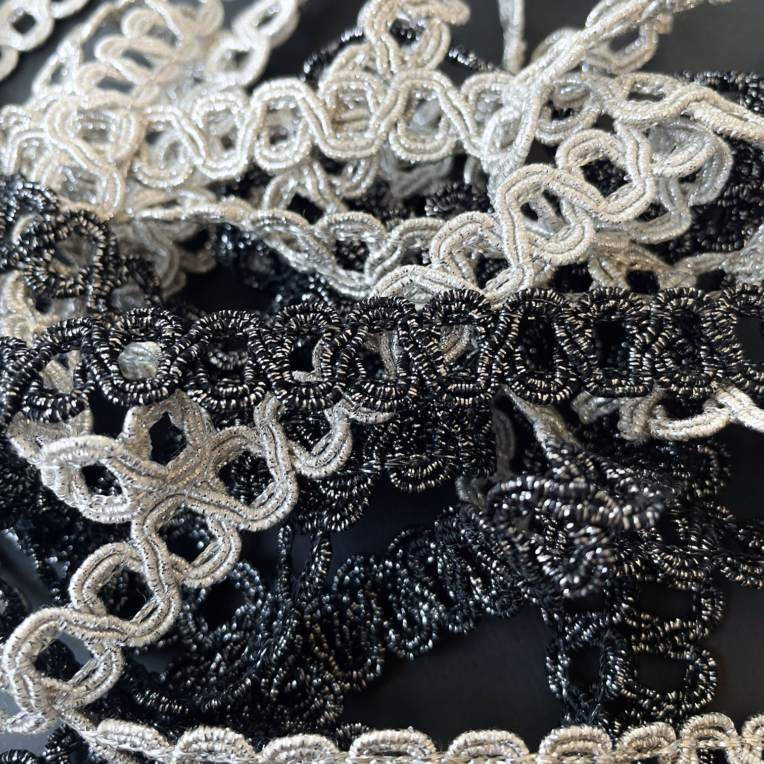 レーヨンの柔らかい風合いに、ポリエステルラメを加えた贅沢な ブレードです。
