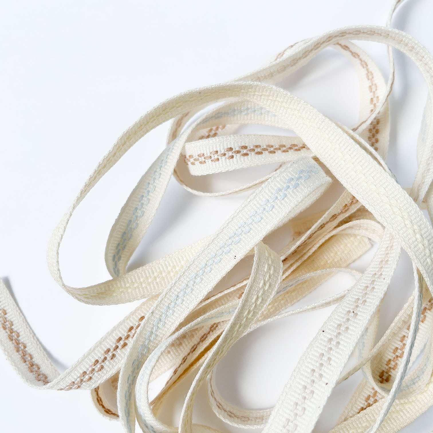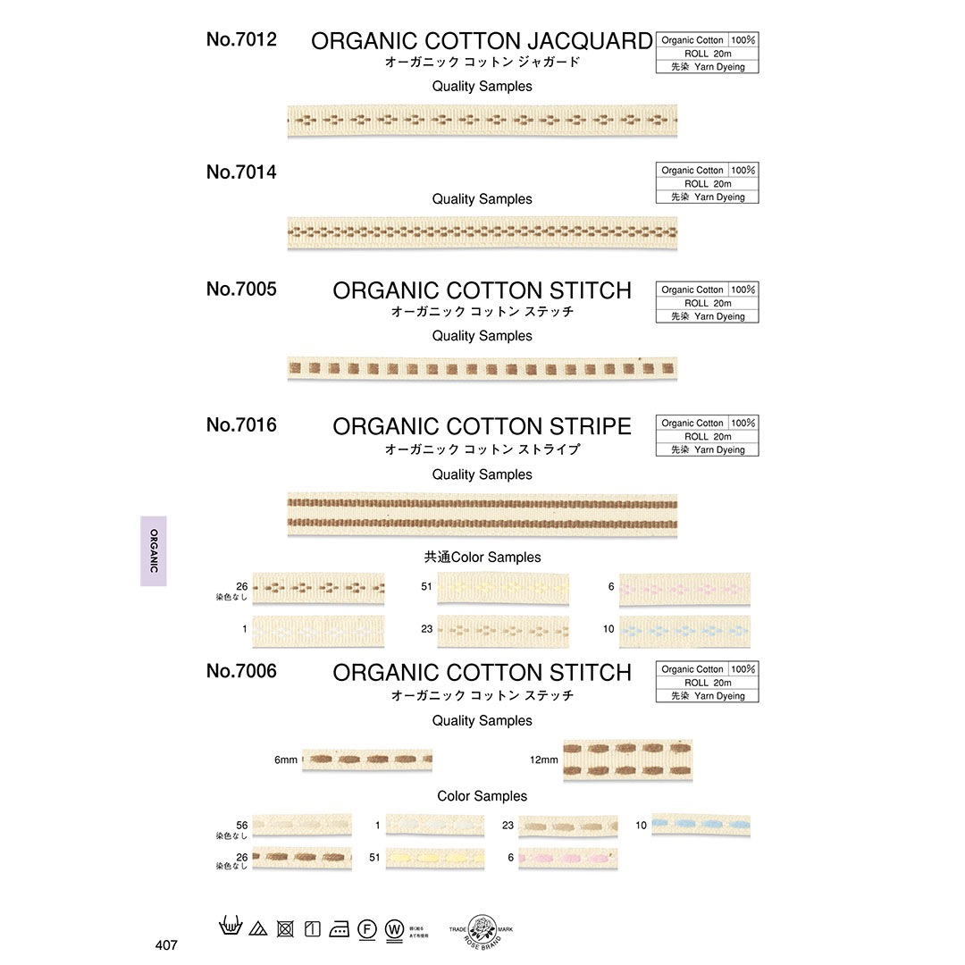 地球環境や、使う人にやさしいオーガニックコットンを使用した、ステッチのジャガードリボンです。