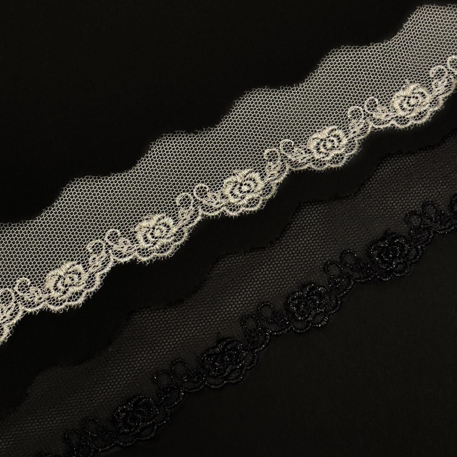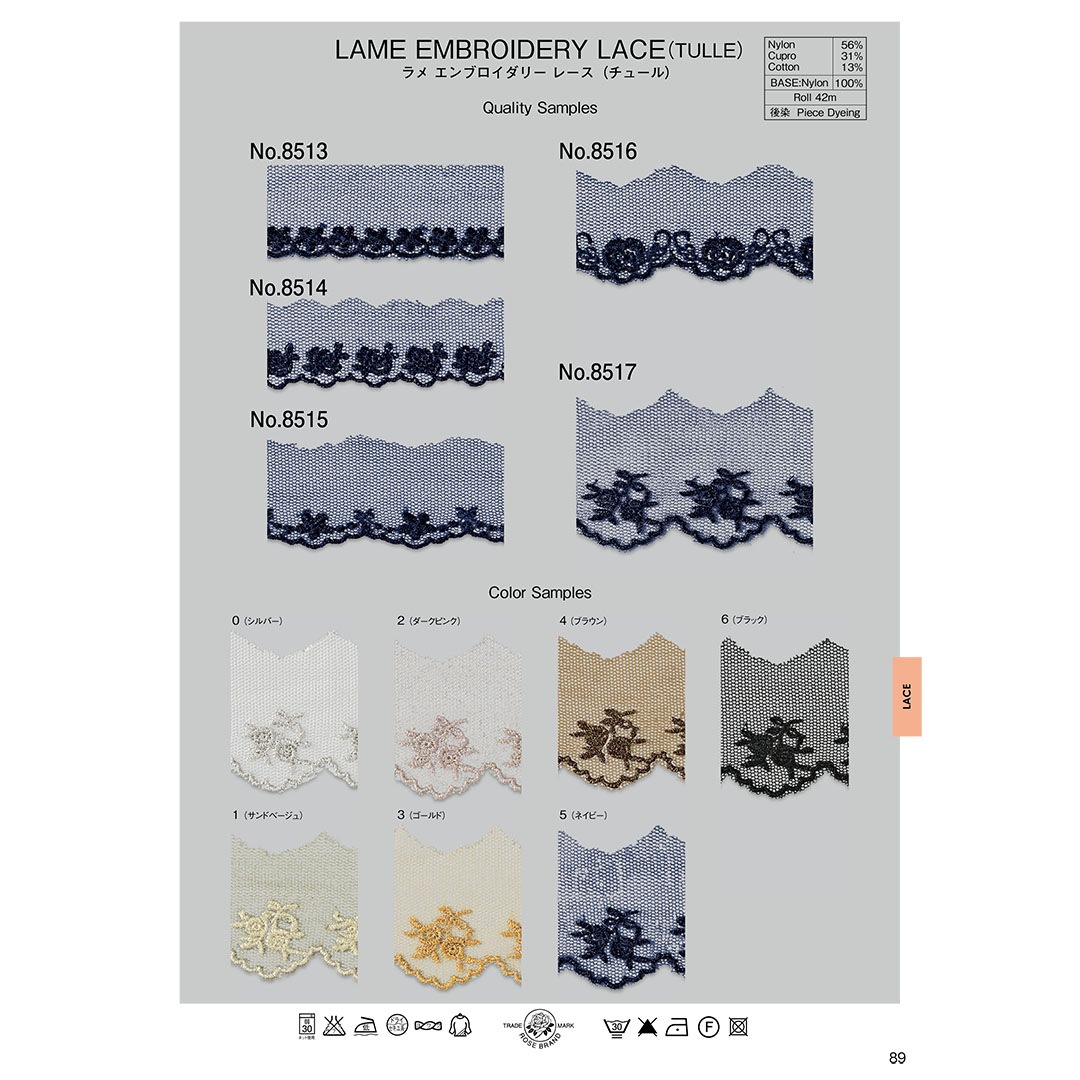 ナイロンの特性を生かした柄出しが繊細なレースで、後染めによる多色展開があります。
