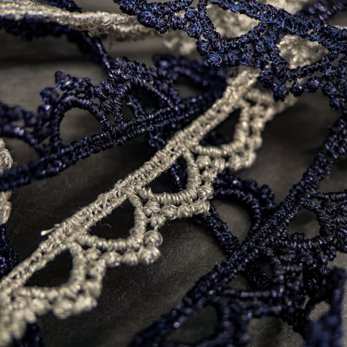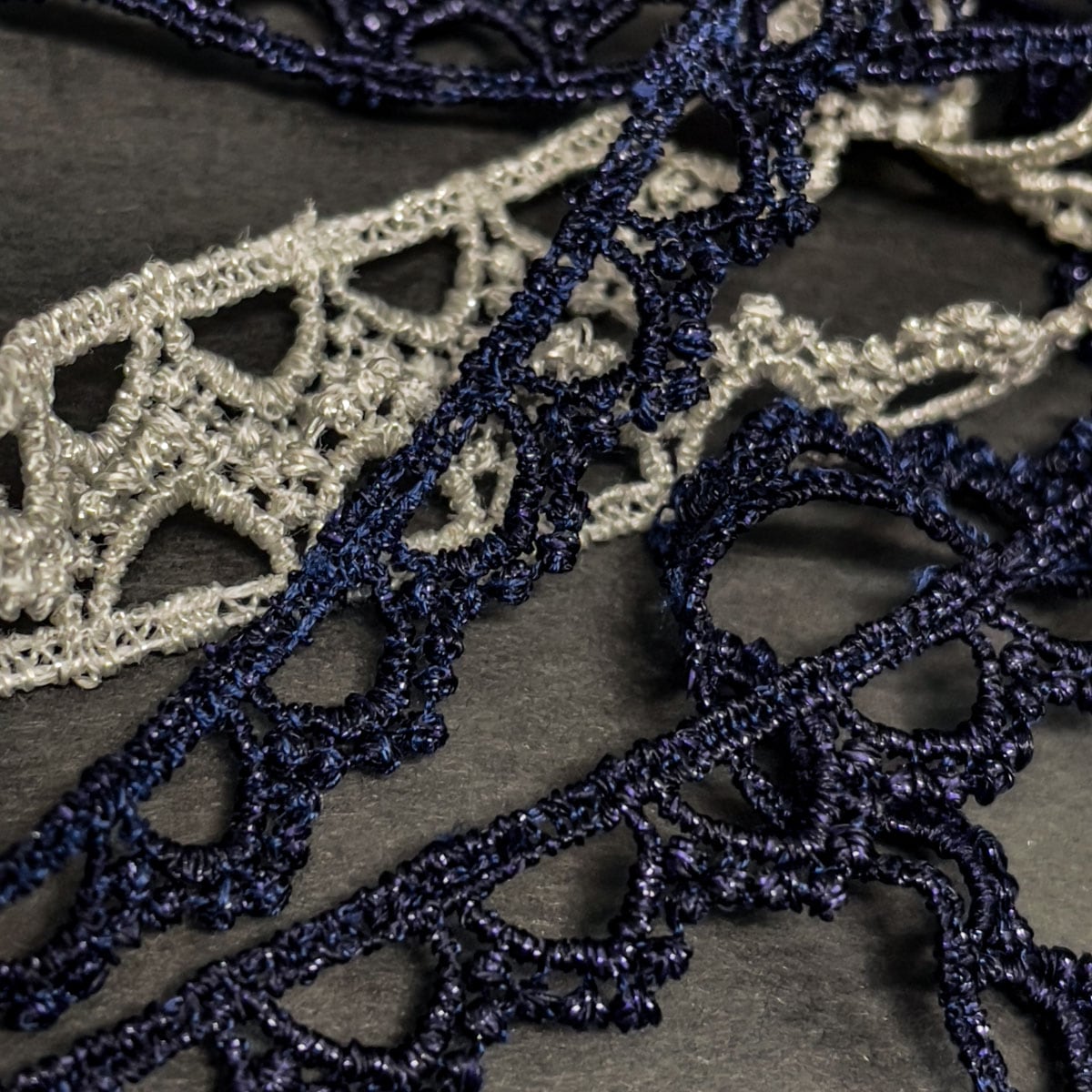 上質なラメ糸を編み込んで基布を溶かしたケミカルレースです。