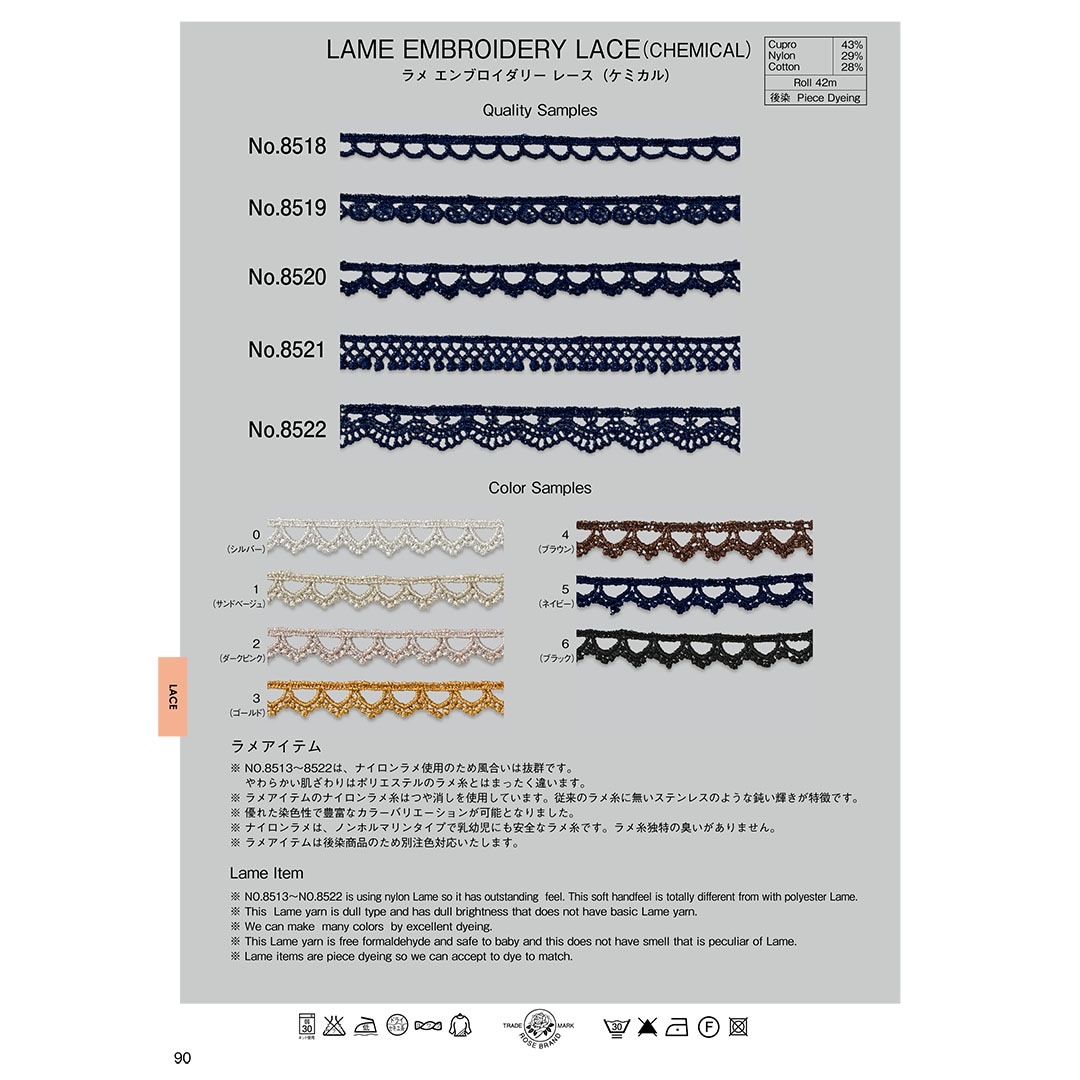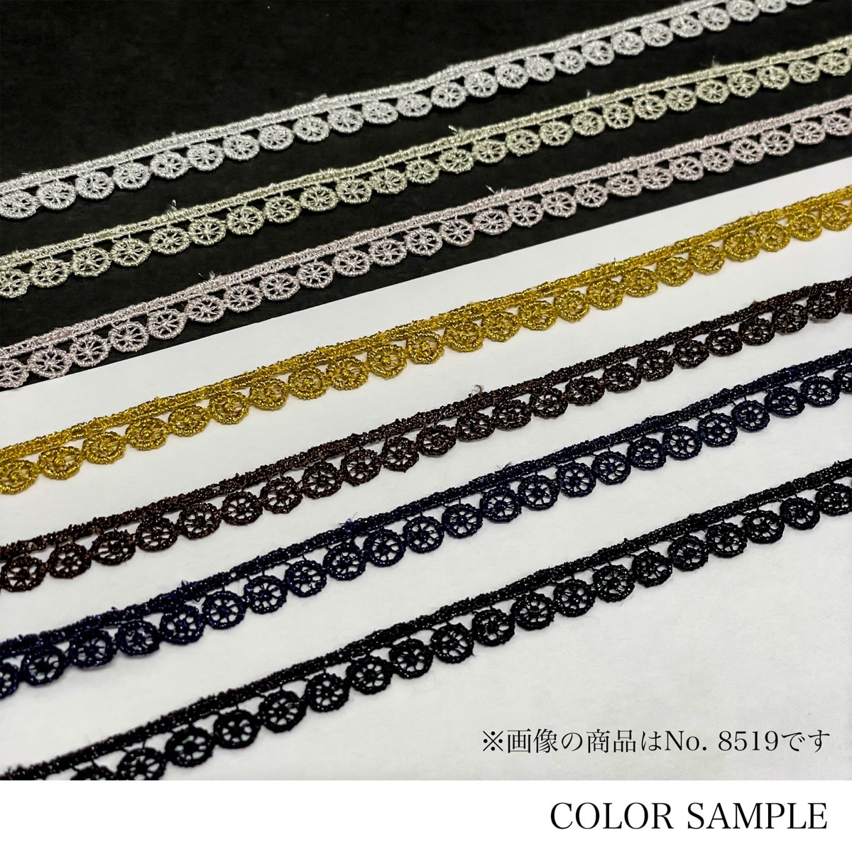 ※NO.8513?8522のナイロンラメ糸はつや消しを使用しています。従来のラメ糸に無いステンレスのような鈍い輝きが特徴です。