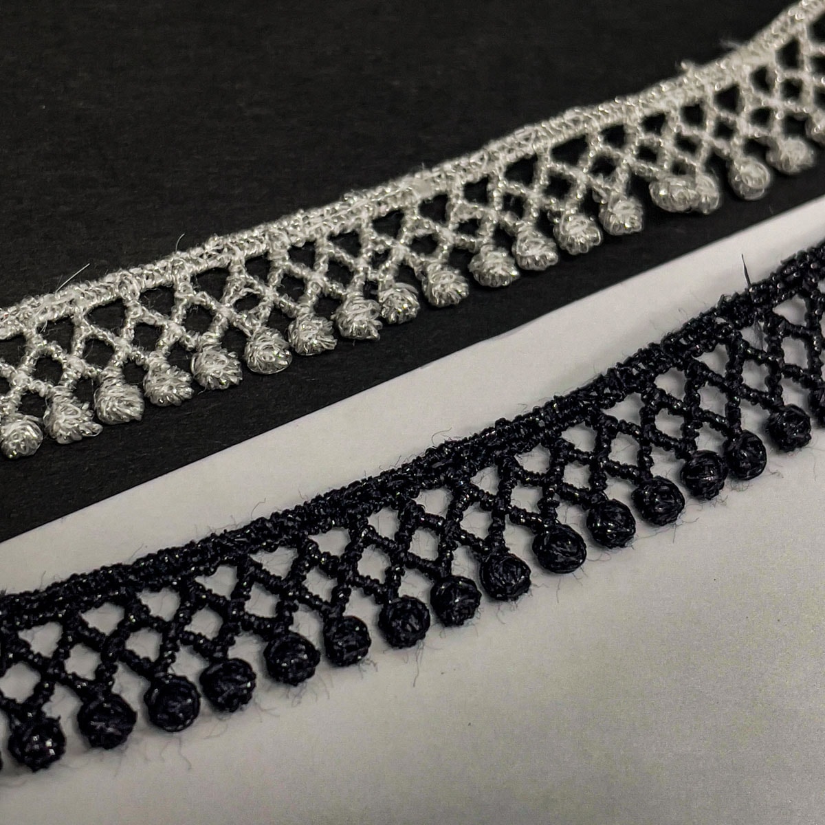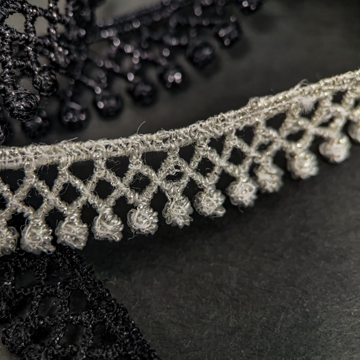 上質なラメ糸を編み込んで基布を溶かしたケミカルレースです。