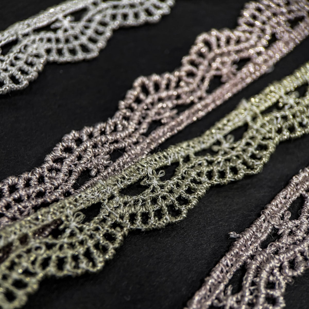繊細な柄出しが特徴のレースで、後染めによる多色展開があります。