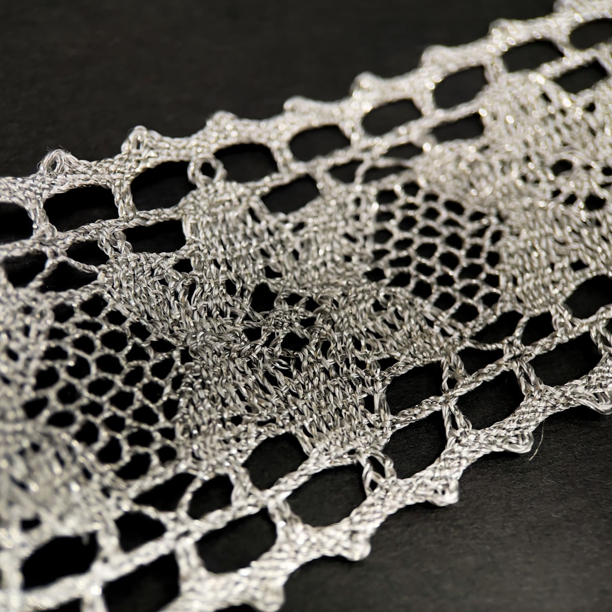 上質なラメ糸を編み込み、後染めをして色展開が豊富なトーションレースです。
