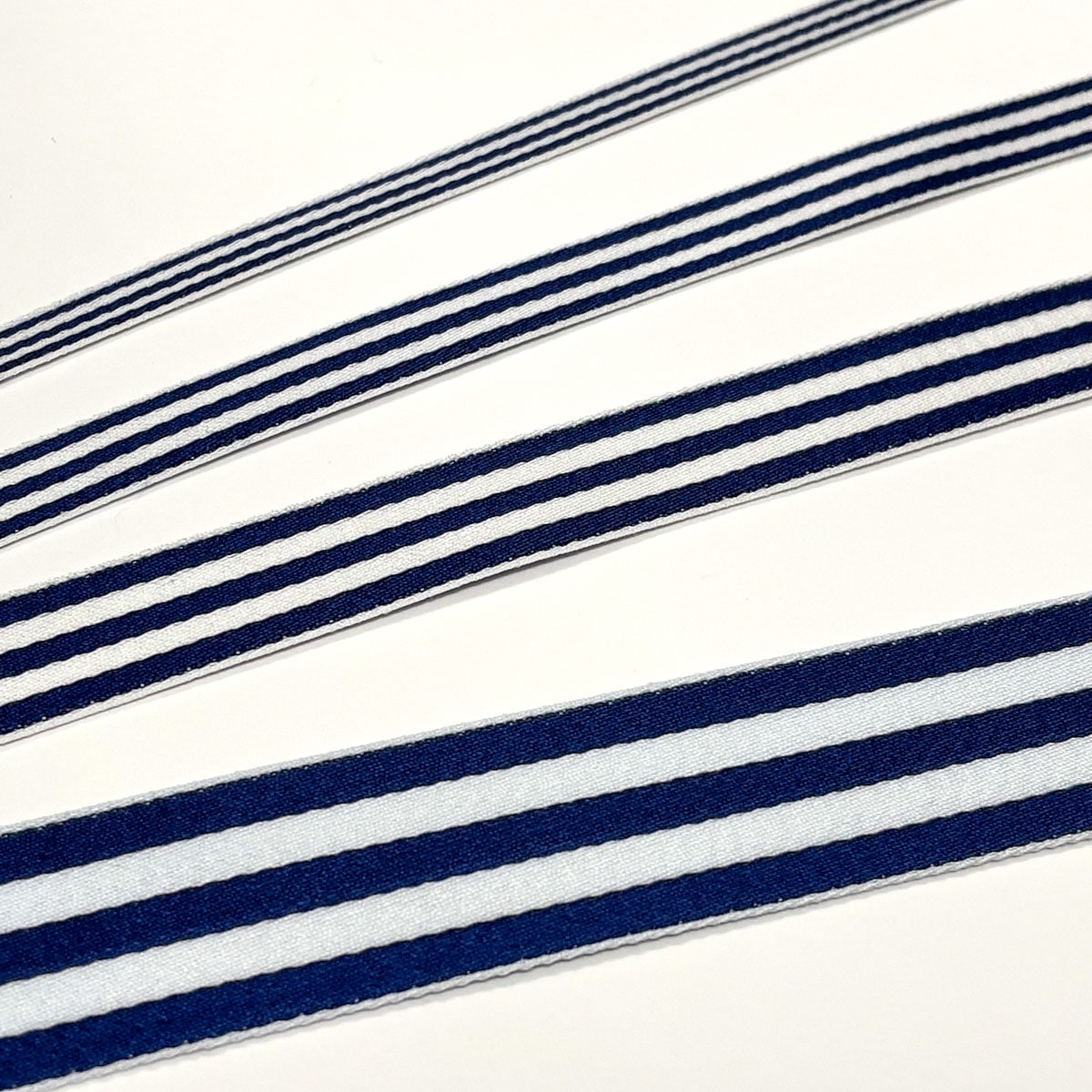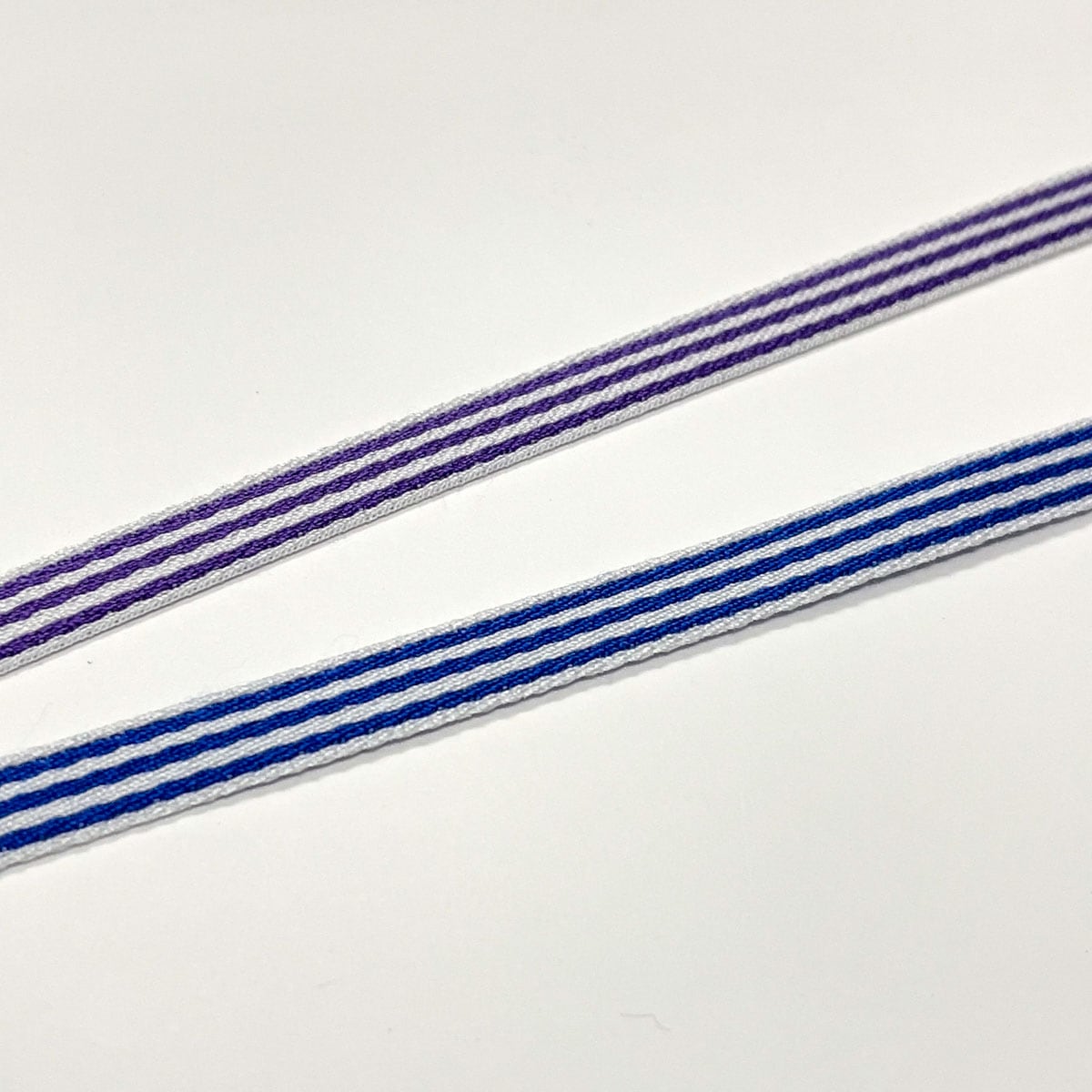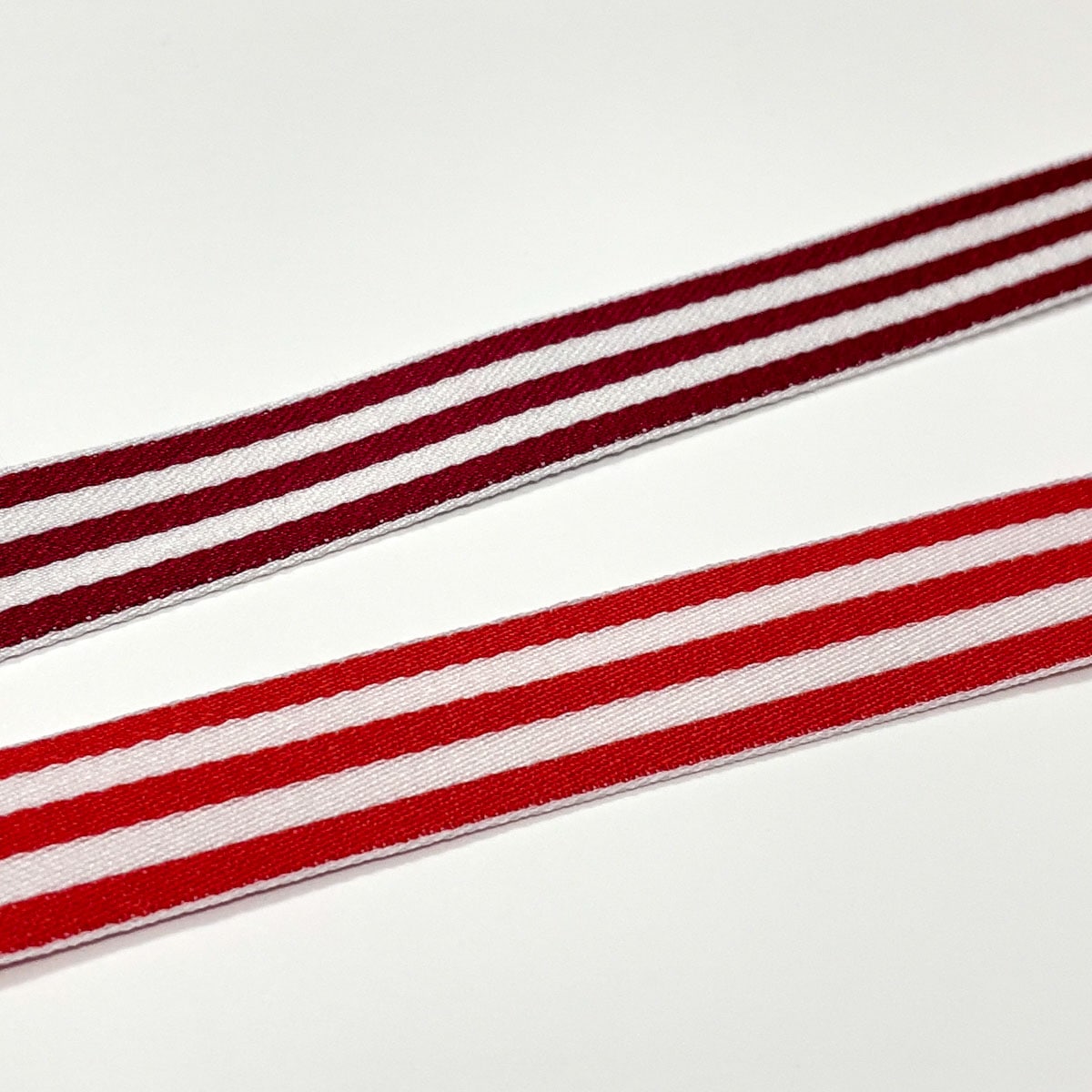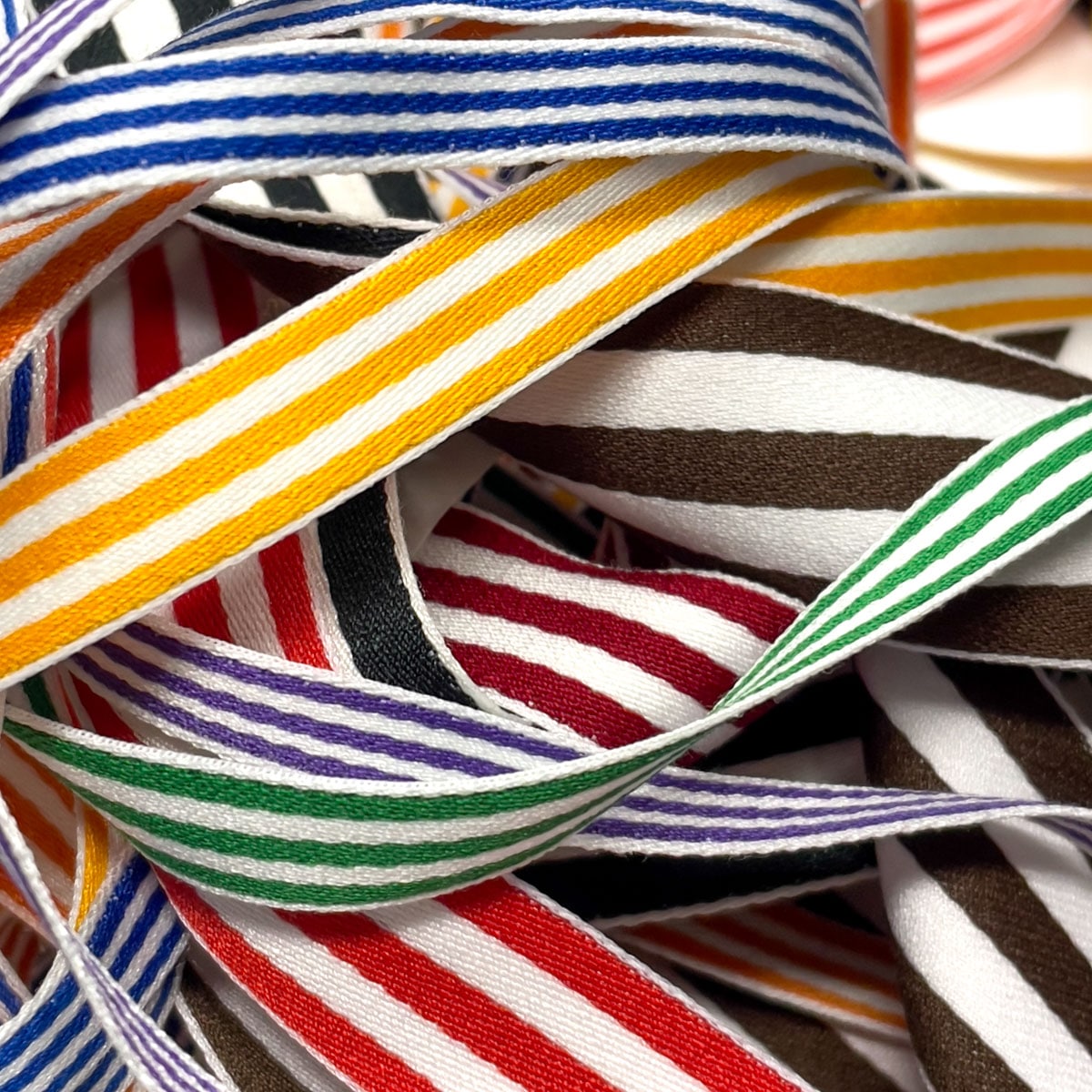 ベーシックなストライプで、色・巾展開も多くキッズからスポーツまで汎用性の高いリボンです。
