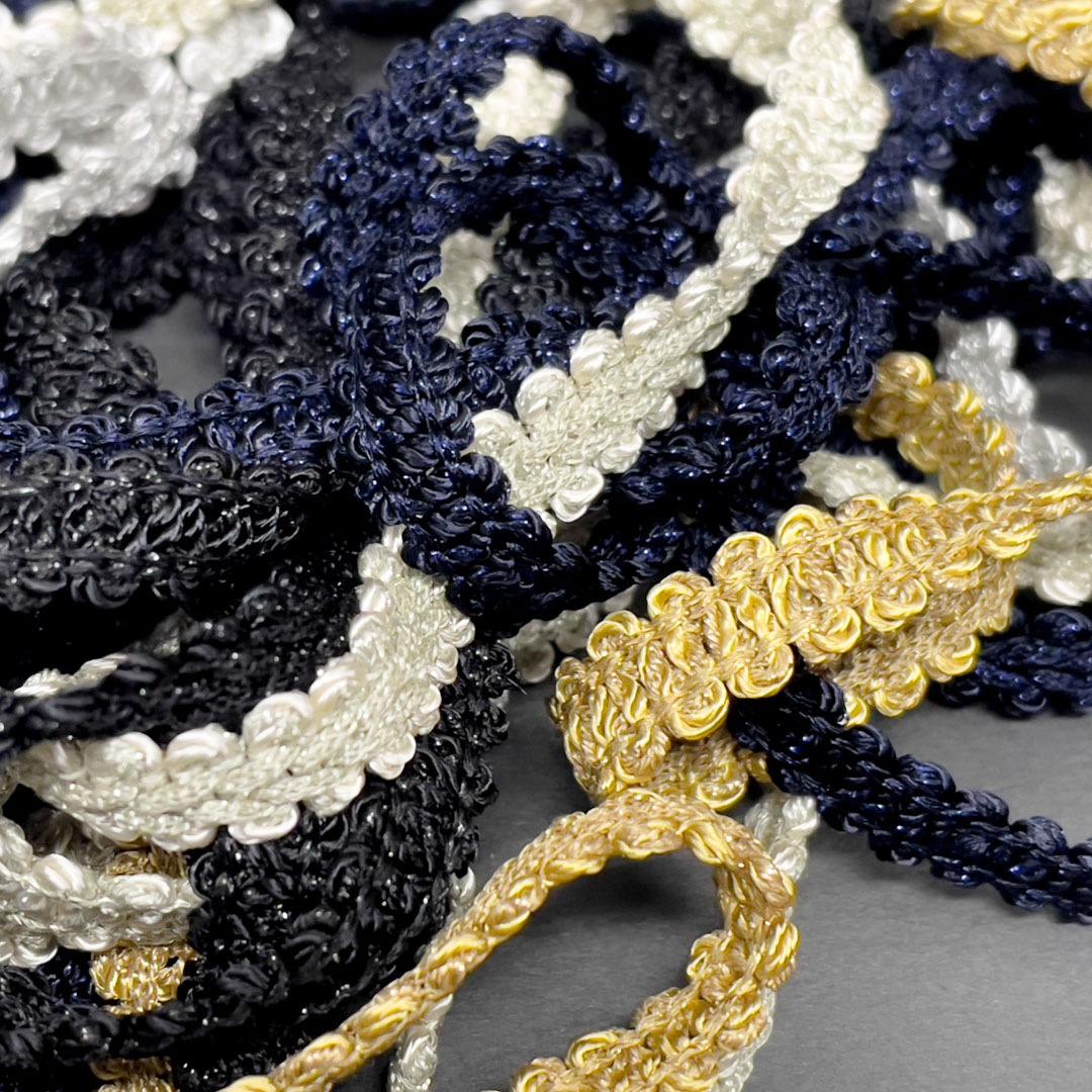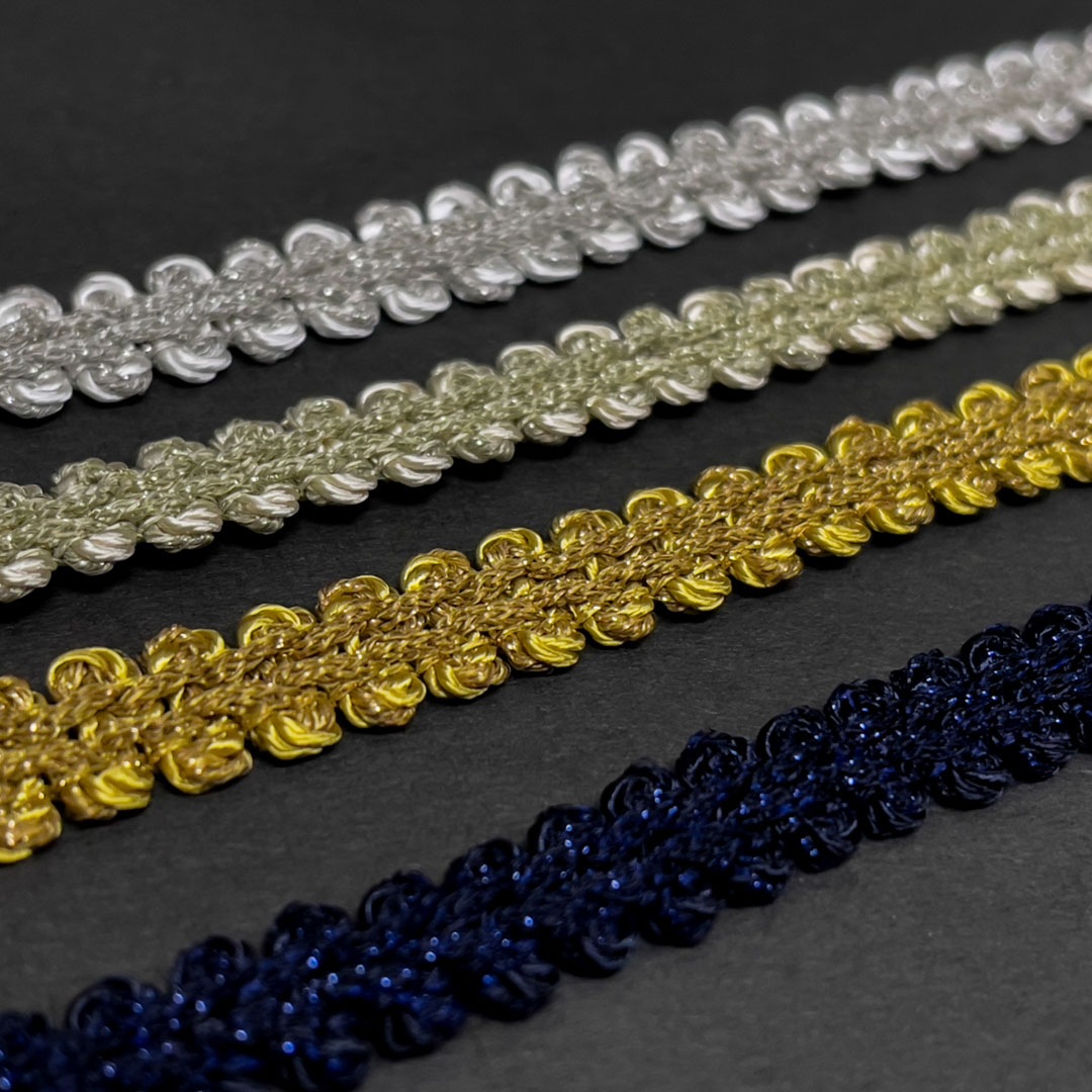 レーヨン糸をベースにナイロンラメを織り込んだプチブレイド。